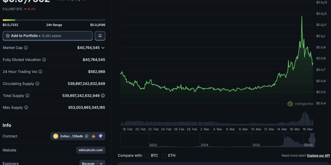 What is WKC Crypto? WIKICAT Price Correction on BSC After +40% Pump